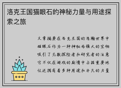 洛克王国猫眼石的神秘力量与用途探索之旅